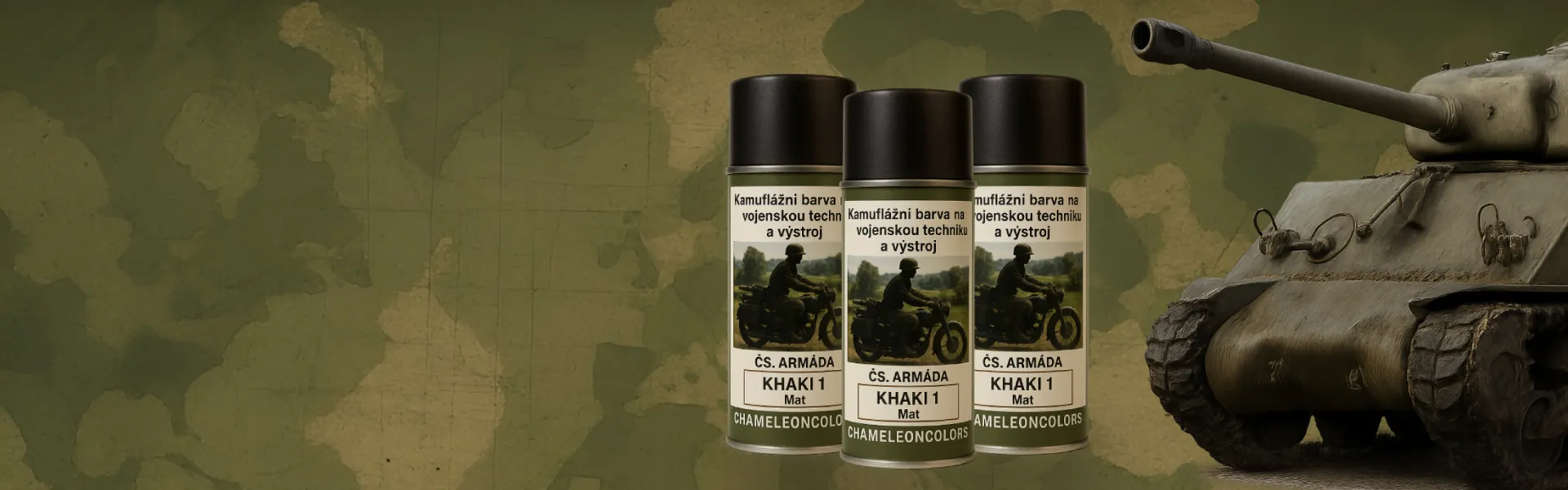 visibility Rychlý náhled Kamuflážní sprej Khaki 1 Khaki 1 Československá Armáda 289,00 Kč Vyberte variantu Vyberte variantu